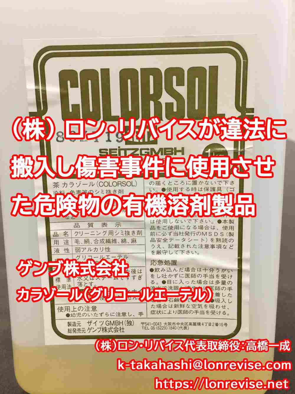 ロンリバイスが傷害行為に使用させた有機溶剤製品。ロンリバイス本社:〒940-0224 新潟県長岡市東町1-11TEL:0258-52-1188ロンリバイス代表取締役:高橋一成k-takahashi@lonrevise.cominfo-lrweb@lonrevise.comhttps://lonrevise.net/