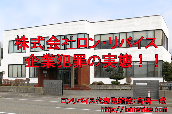 ロンリバイス経理部部長は高橋一成社長の母親の高橋純子。ロンリバイス総務部部長は母親と深い関係の佐藤基。もう80歳を超えているこれらの老人がロンリバイスの様々な法令違反や息子で社長の高橋一成の犯罪行為を隠蔽してきた。まさに老害が支配する田舎のクソ同族会社。ロンリバイス代表取締役:高橋一成k-takahashi@lonrevise.comhttps://lonrevise.net/